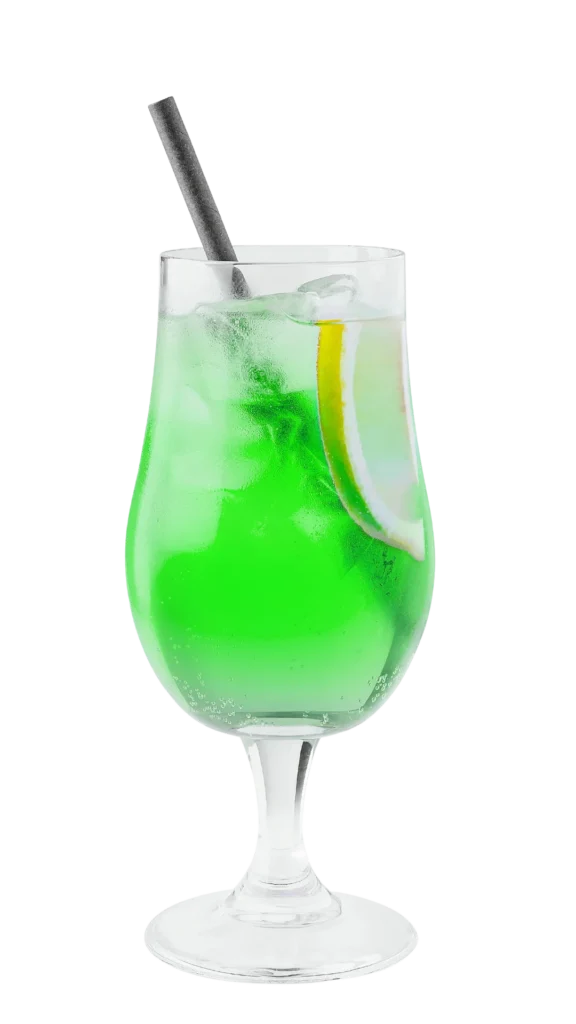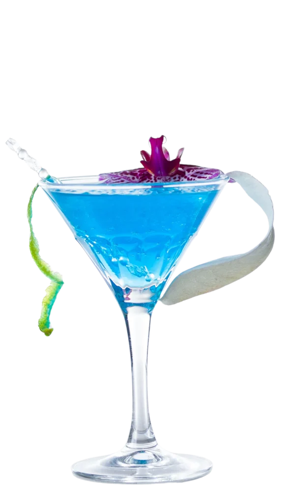 Cool blue cocktail with a crisp citrus edge.